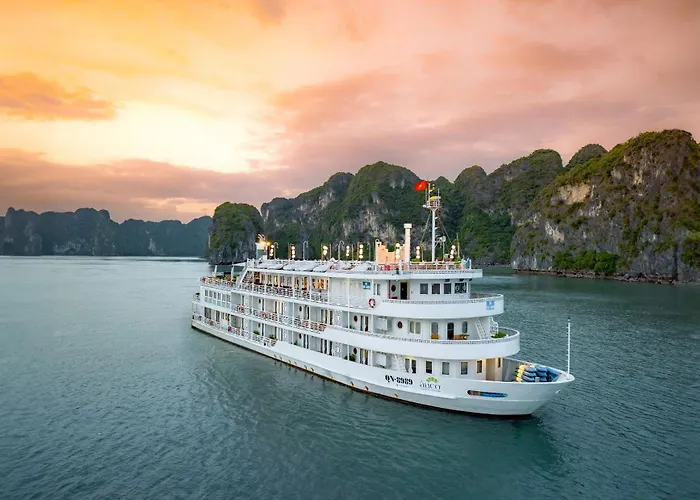 Das 5-Sterne Hotel The Au Co Cruise - Managed By Bhaya Cruise Hạ Long liegt im Stadtviertel Tuan Chau, in einer Entfernung von 43 Autominuten vom Flughafen Hai Phong. Das Hotel bietet den Gästen WLAN im ganzen Gebäude sowie einen Jacuzzi und einen Whirlpool.